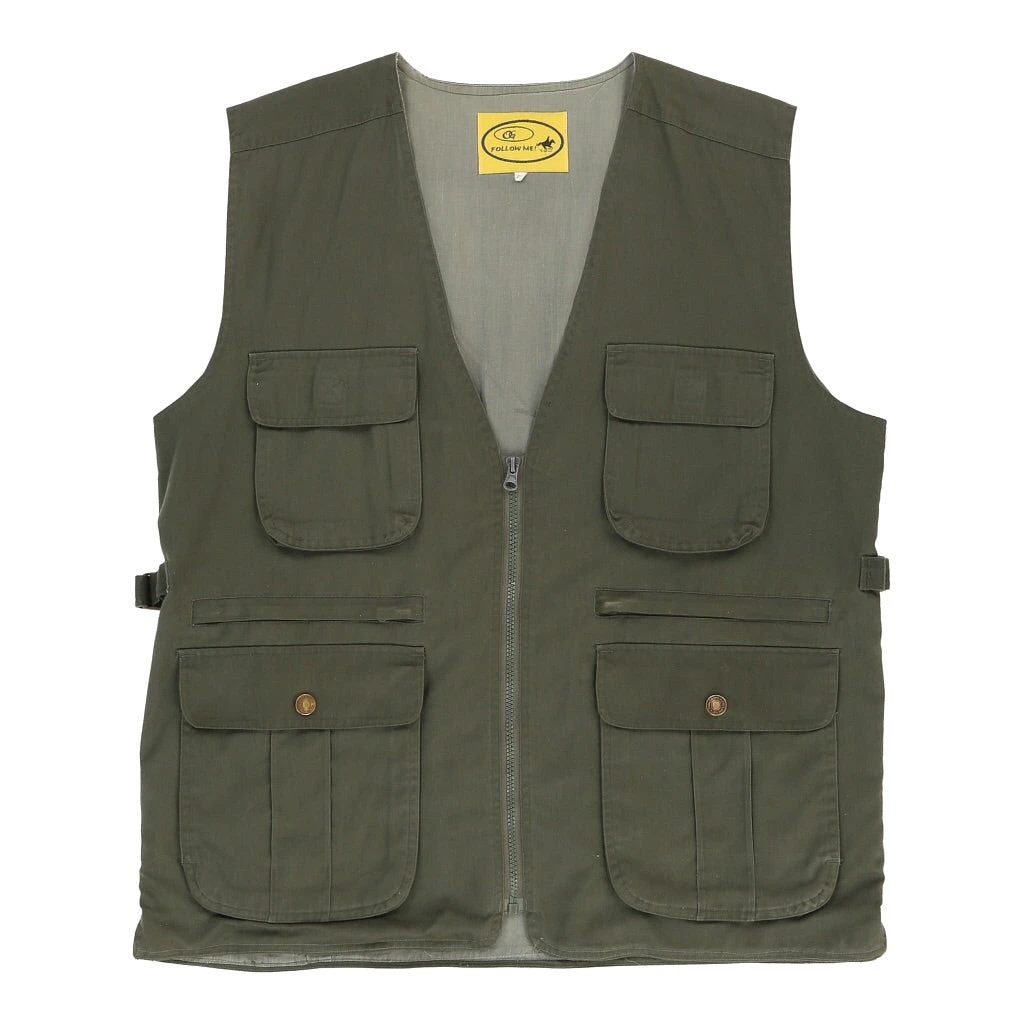 Vintage khaki Follow Me gilet, fits xx-large.